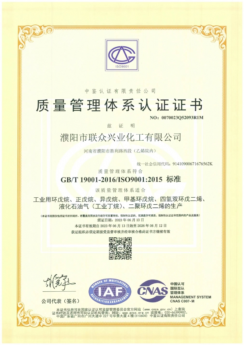 質(zhì)量管理體系認(rèn)證證書(shū)